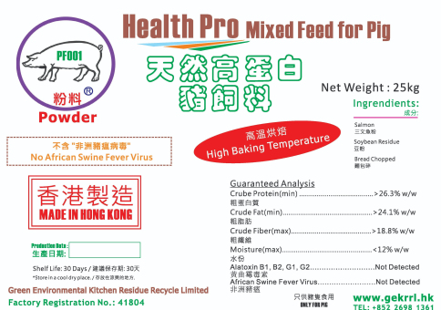 GREEN ENVIORMENTAL KITCHEN RESIDUE RECYCLE LIMITED was incorporated on 06 Auguest, 2013 in Hong Kong. Our factory is located at Lot5, DD95, Fong Kong Shan Road, Ho Sheung Heung, Sheung Shui, N.T.. We produced the animal feed which collected from the food waste since 2013.